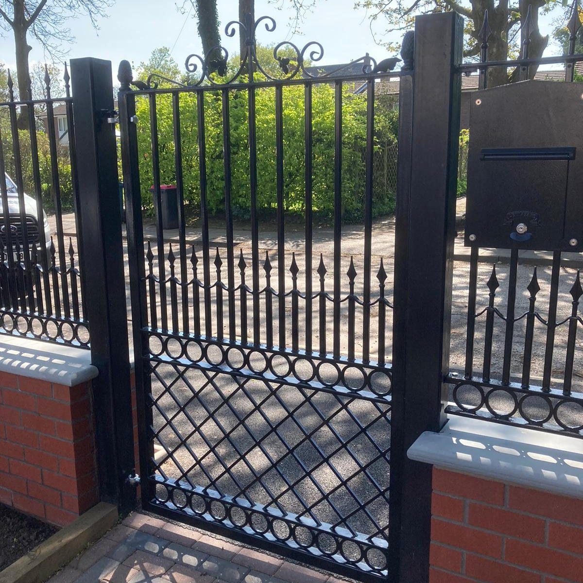 Steel swing gates with matching pedestrian gate in Eccles, Greater Manchester